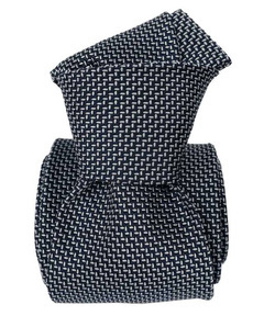Printed Silk Tie - Navy with Burgundy Squares