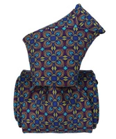 Printed Silk Tie - Burgundy Flowers and Squares