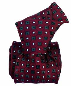 Klasyczny Krawat Jedwabny - Bordowy w Zielone Kwadraty