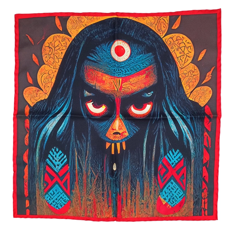 Poszetka jedwabna z wyjątkowym wzorem Szamana