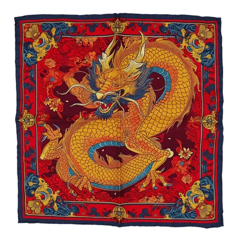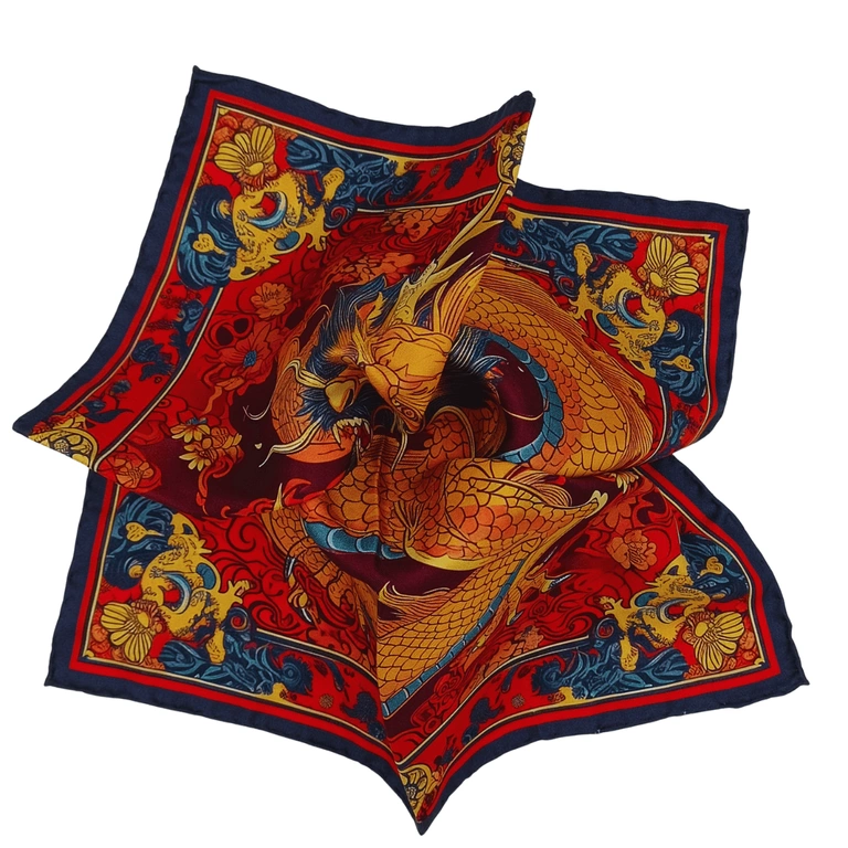 Poszetka jedwabna z wyjątkowym wzorem Chińskiego Smoka